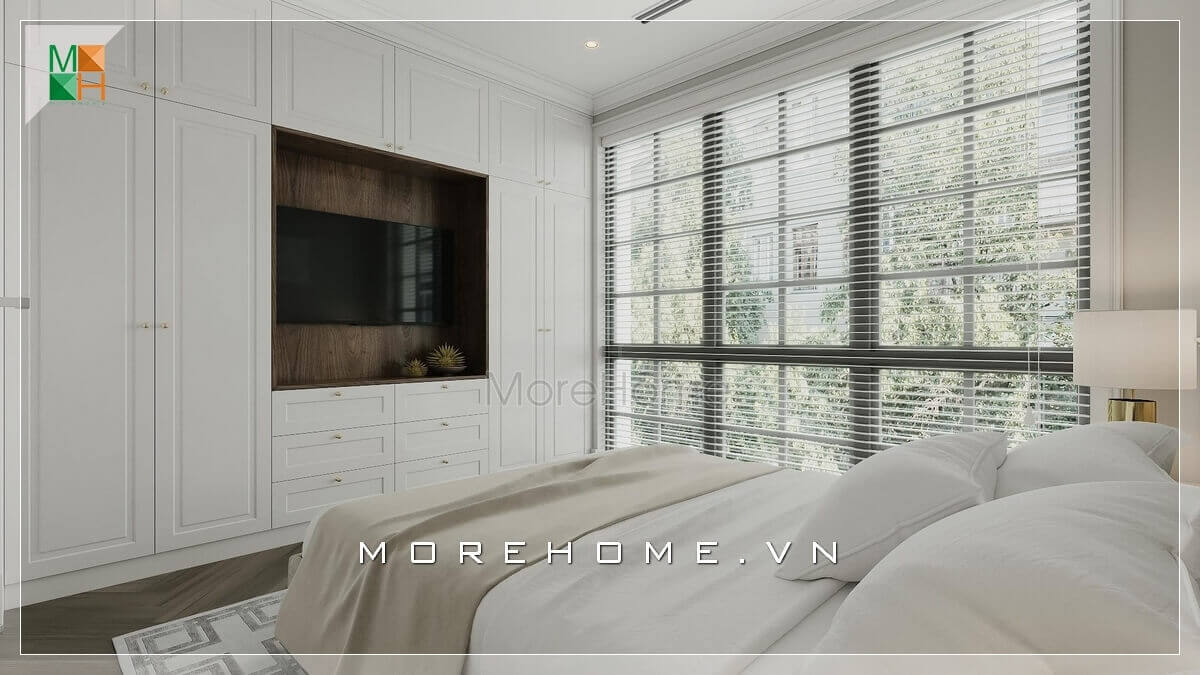 Sắc trắng tinh tế và lối thiết kế độc đáo của phòng ngủ biệt thự, nhà phố được nhiều gia chủ lựa chọn bởi sự nhẹ nhàng, trẻ trung và tinh tế.