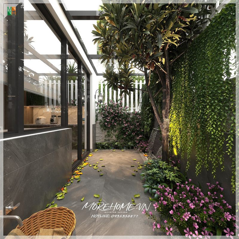 Cửa sổ bằng kính có rèm kéo nhận trực tiếp ánh sáng tự nhiên vào bên trong phòng mà còn giúp gia chủ có thể nằm quan sát được xung quanh mọi nơi dễ dàng.