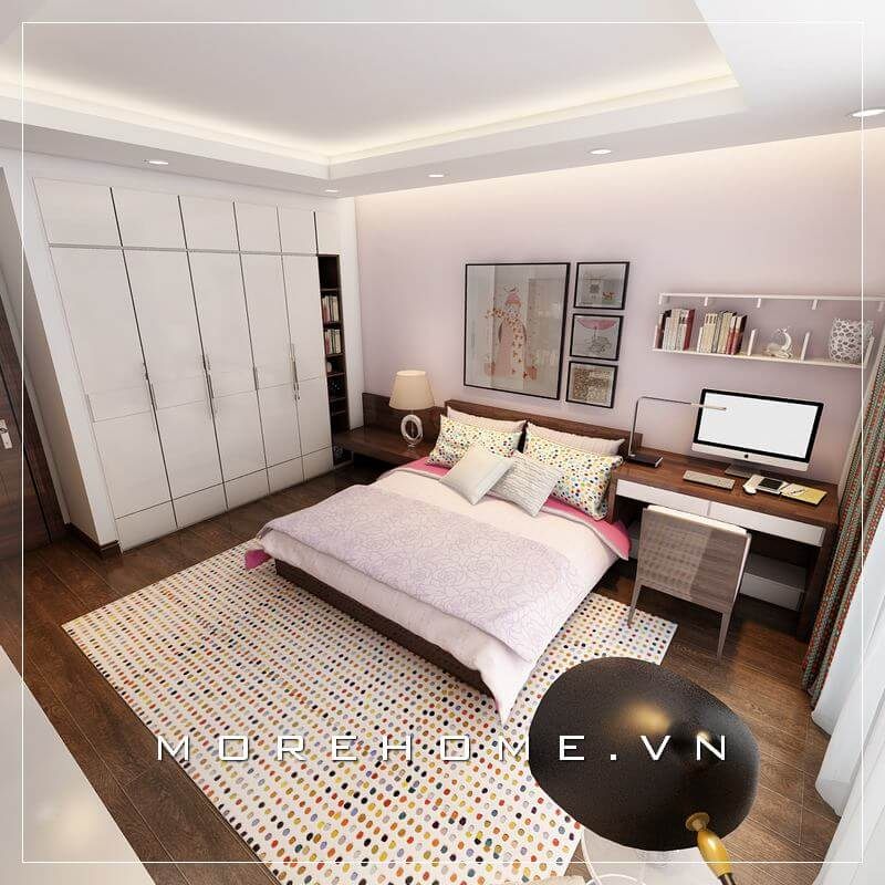 Nội thất phòng ngủ con gái phong cách hiện đại, màu sắc trang nhã giúp cho giấc ngủ của gia chủ ngon hơn, sâu giấc hơn
