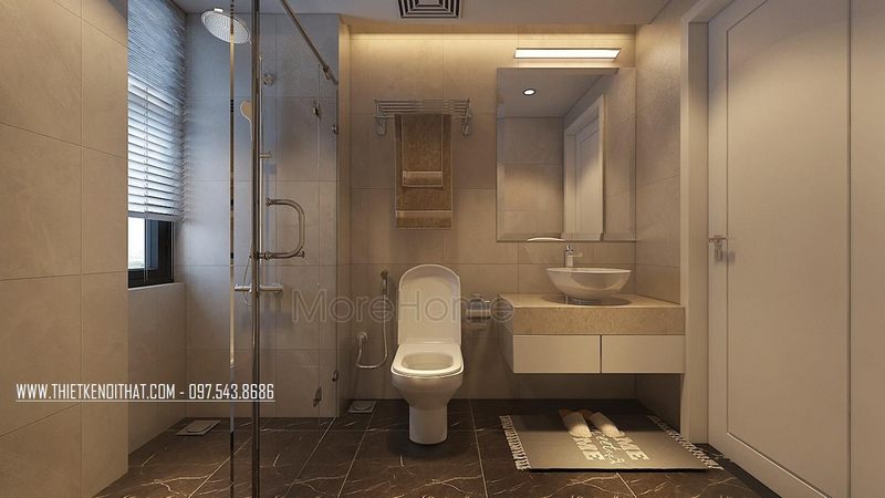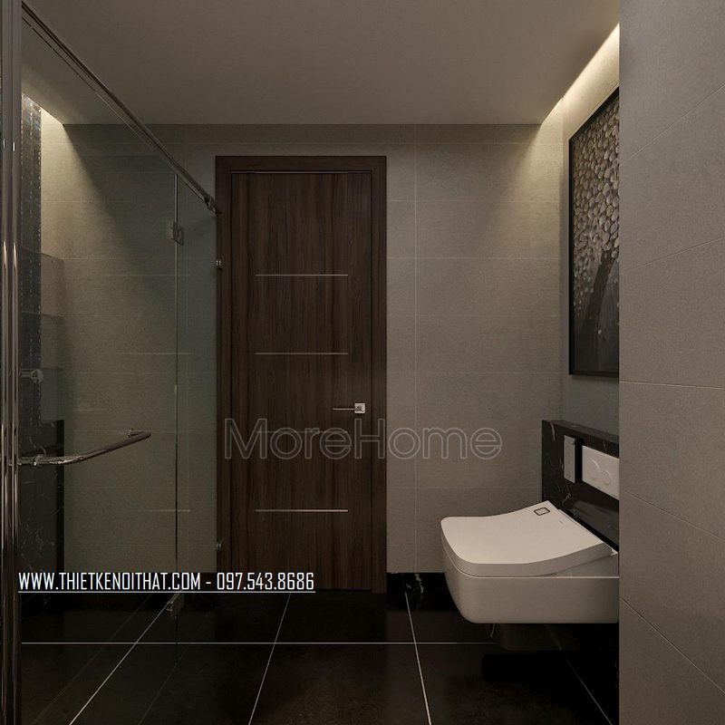 Nhà vệ sinh phòng ngủ được làm bằng kính rất sang trọng, biến căn phòng ngủ trở nên cao cấp hơn và hiện đại hơn.