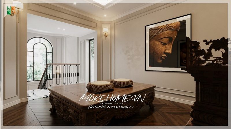 Thiết kế không gian phòng thờ thành kính giúp gia chủ làm ăn phát tài phát lộc.