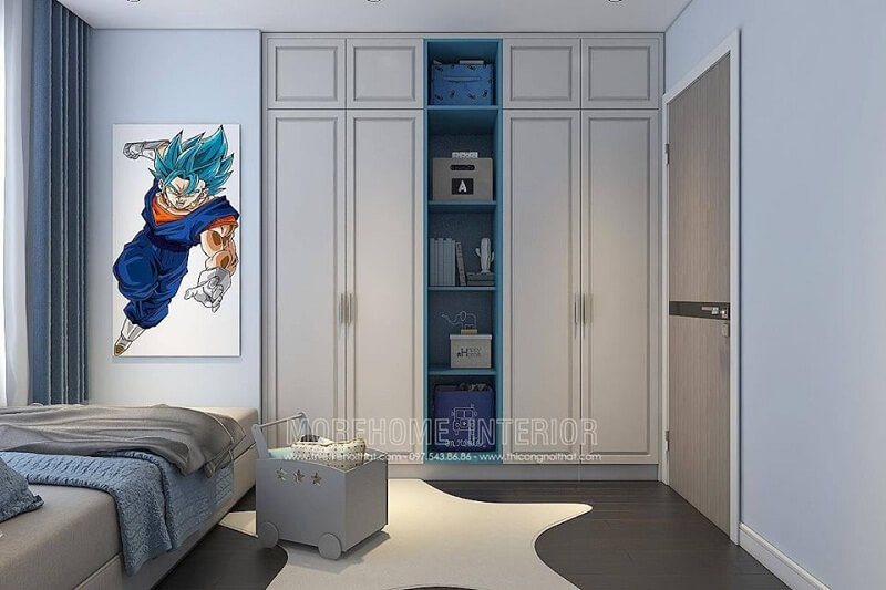 Thiết kế tủ quần áo màu trắng đầy tinh tế, độc đáo cho phòng ngủ bé trai tại biệt thự cao cấp